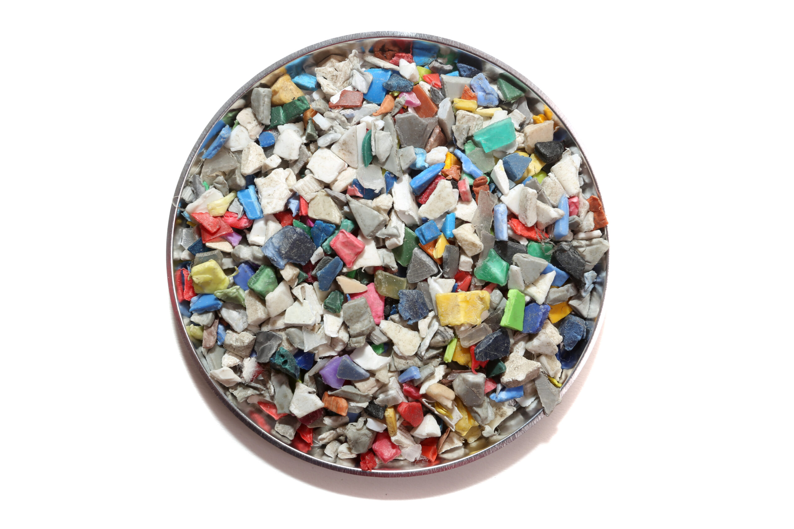 PP-Mahlgut aus Post-Consumer-Abfällen (z. B. Hartkunststoffe). Mehrfarbig, gewaschen und entstaubt.